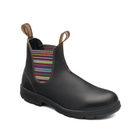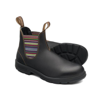 - Brown premium leather upper and multi-coloured striped elastic gusset Chelsea boot