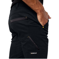 Weekend style meets the job site with CAT's modern industrial lightweight Dynamic Cuff Pant. These are packed with handy features like front left and back right cargo pockets, front slash pockets, rear welt pockets and knee overlays for better durability. The Dynamic Cuff Pant is a modern slim tapered fit with elastic cuffs at the hem.