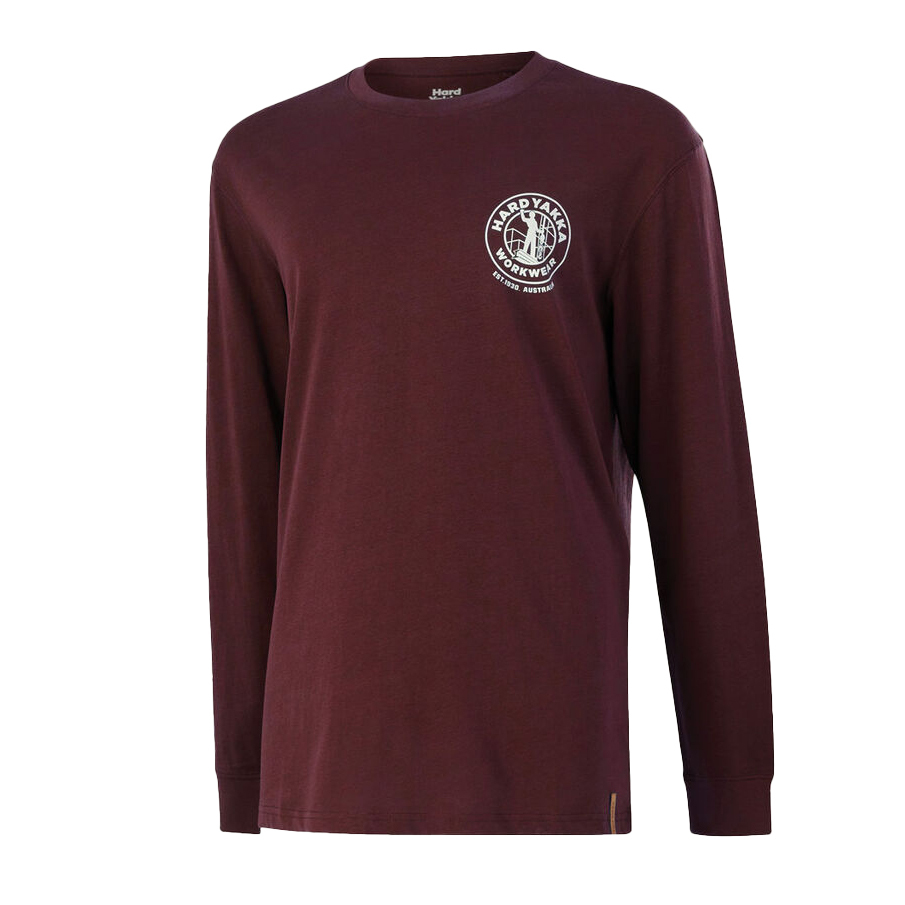 Hard Yakka Mens Heritage Icon L/S Tee (Y11489) Burgundy S