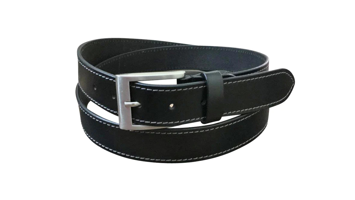 Jacaru Unisex Stitched Leather Belt - 35mm (6014) Black 38-40"