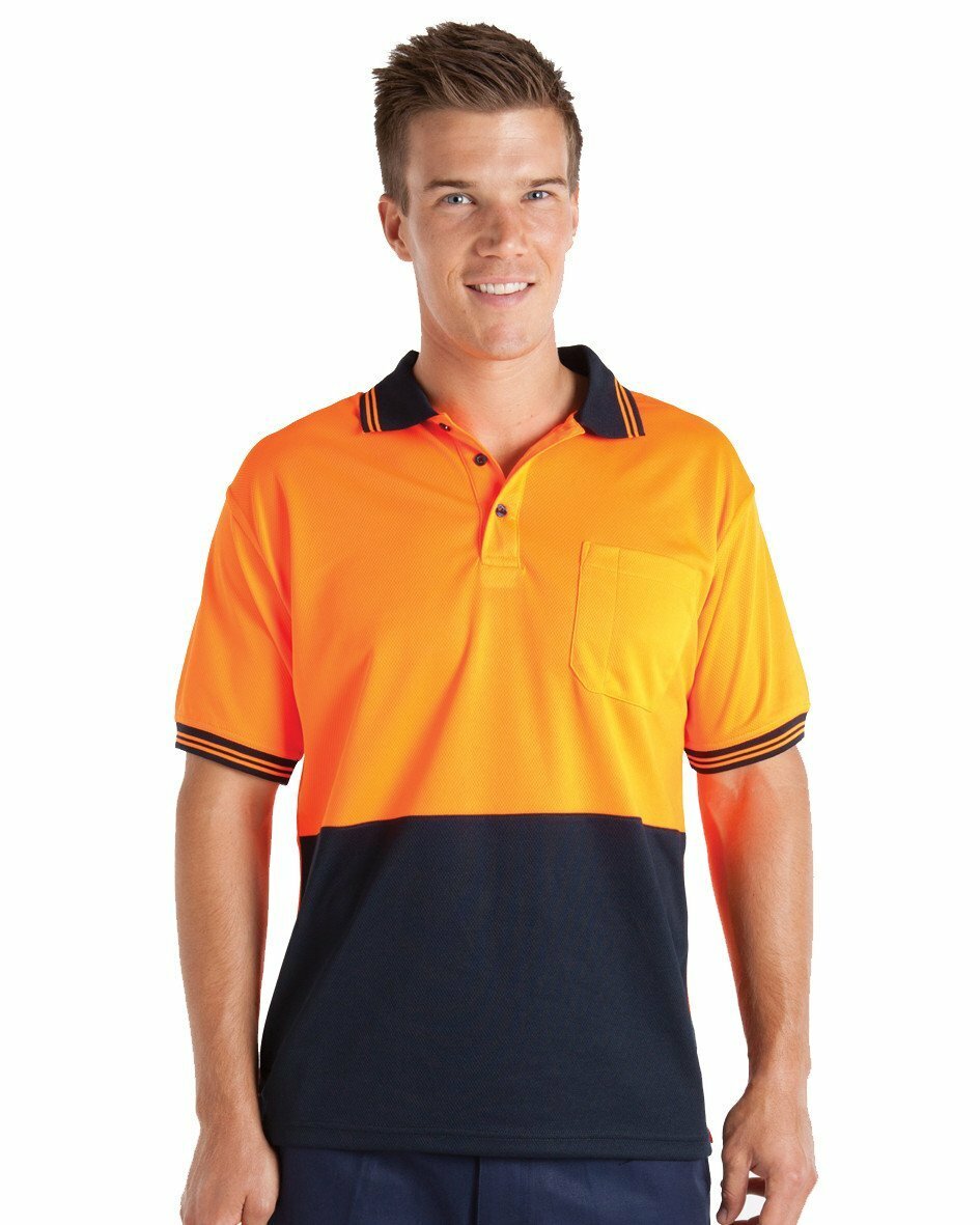 JB's Mens Hi Vis Traditional S/S Polo (6HVPS) Orange/Navy M [GD]