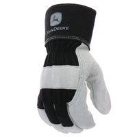 John Deere Mens Cotton Back-Split Cowhide Leather Palm Gloves (JD71057-L) Black/Natural L