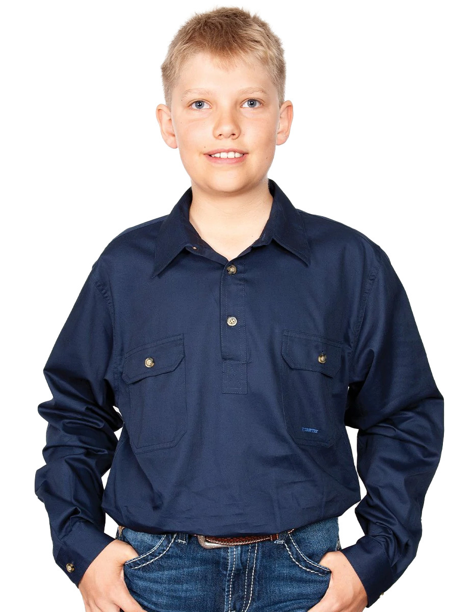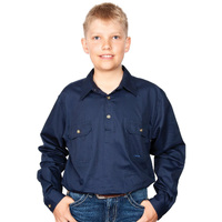 Just Country Boys Lachlan Half Button Work Shirt (30303) Navy XL/14-16