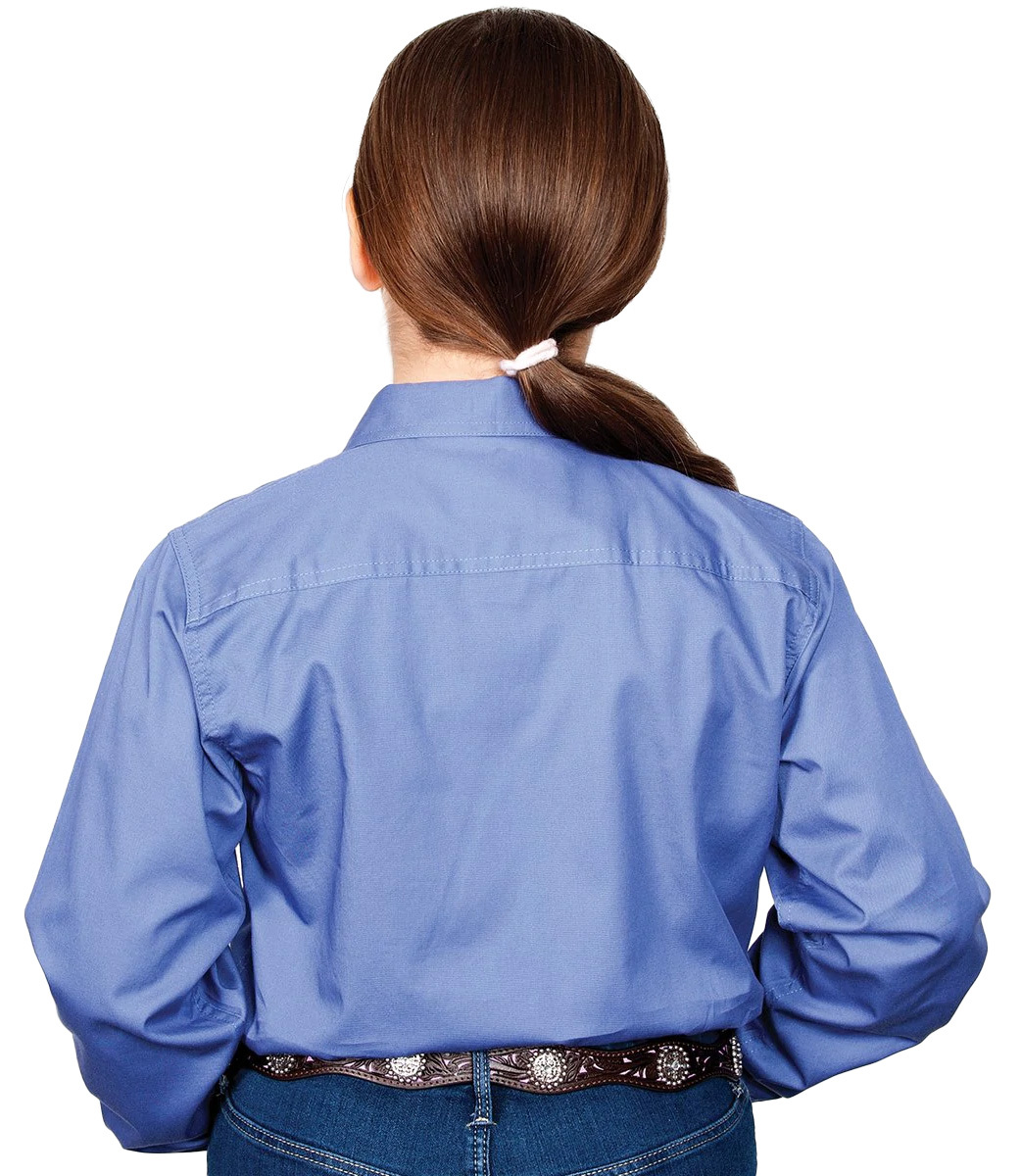Well, now the kids can have the same style as the big girls! The Kenzie Half Button Work Shirt is crafted in 100% light-weight cotton fabric. It's the perfect shirt for kids on the land.