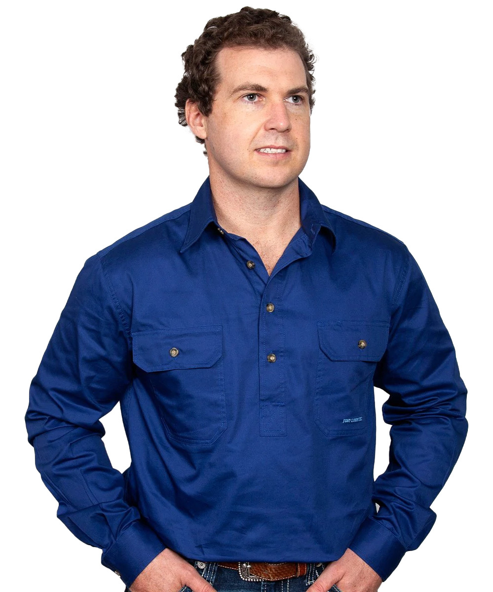 Just Country Mens Cameron Half Button Work Shirt (10101) Cobalt S