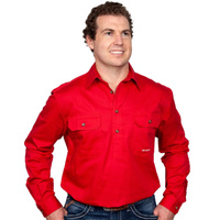 Just Country Mens Cameron Half Button Work Shirt (10101) Chilli S