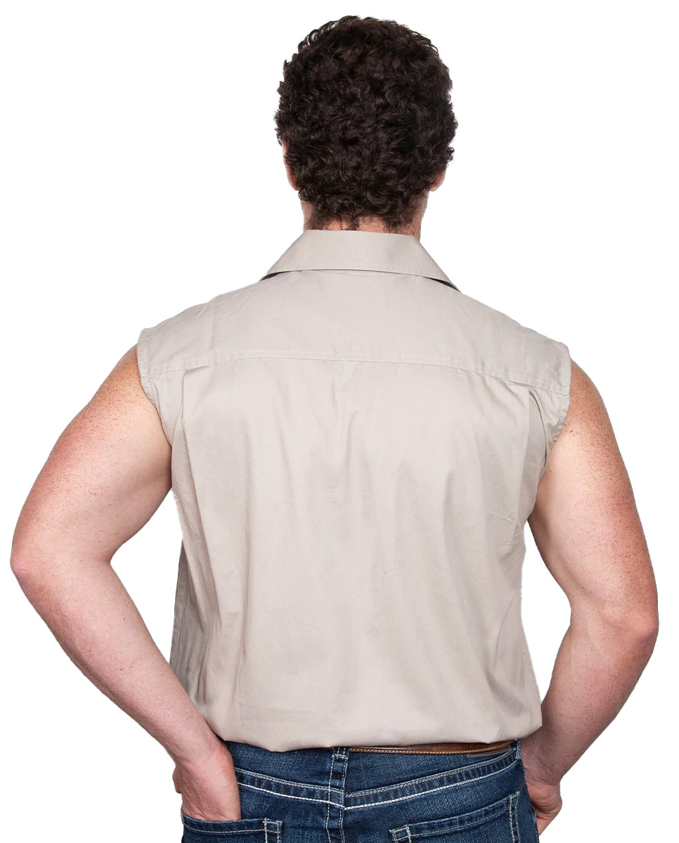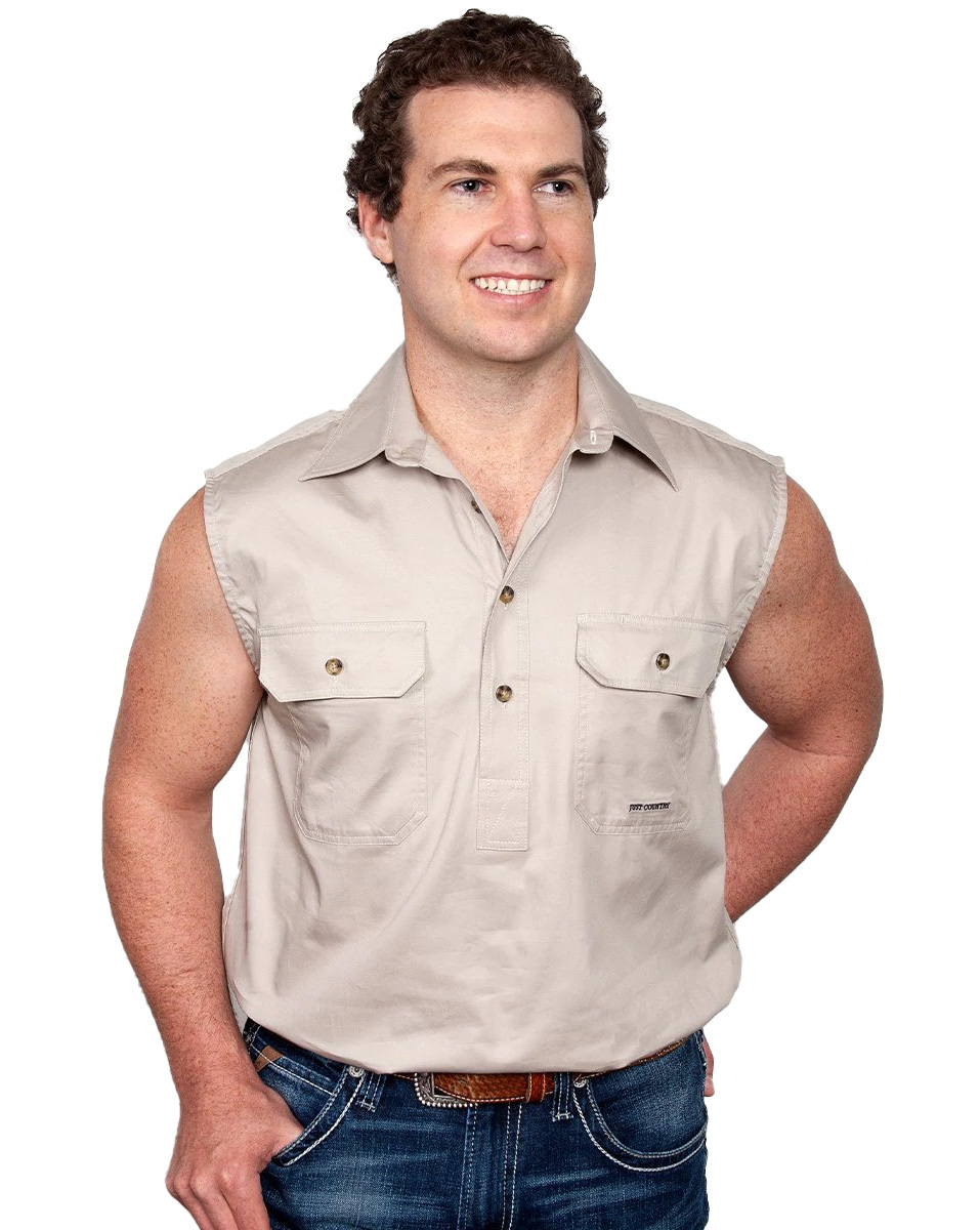 Just Country Mens Jack Sleeveless Half Button Work Shirt (10103) Stone S