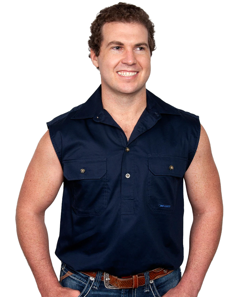 Just Country Mens Jack sleeveless Half Button Work Shirt (10103) Navy S