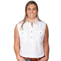 Just Country Womens Kerry Sleeveless Half Button Work Shirt (50503) White 2XL/18