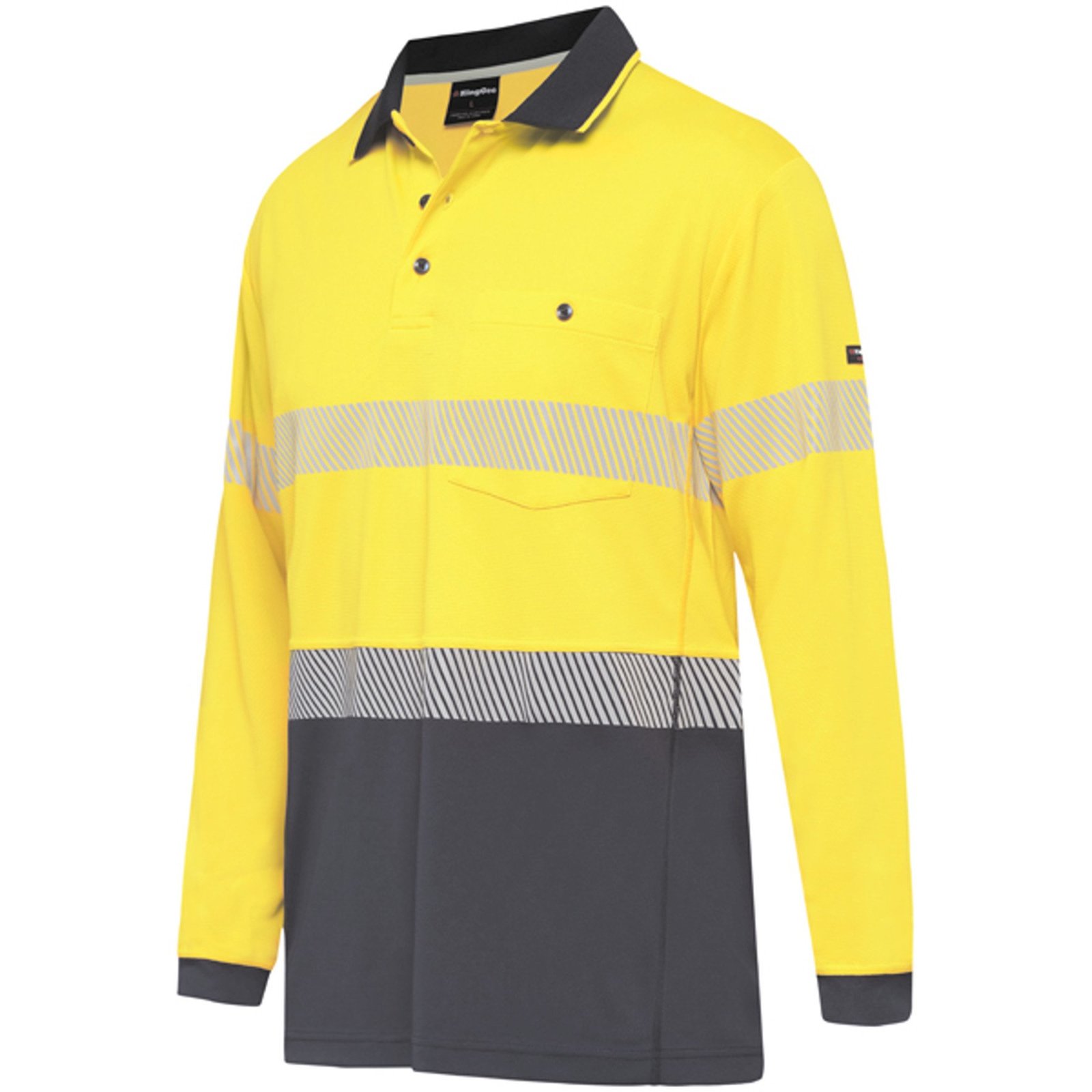 KingGee Hi Vis Workcool Hyperfreeze Spliced Taped L/S Polo (K54225) Yellow/Navy S [GD]