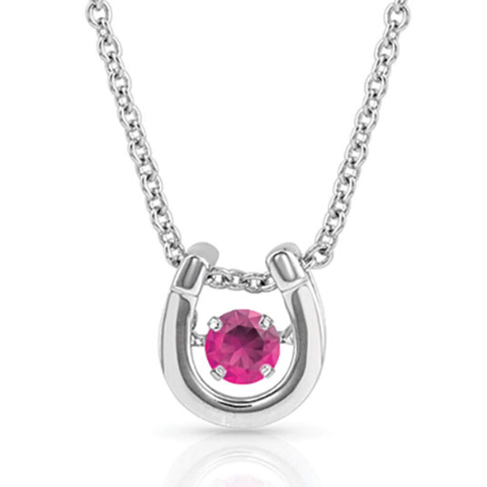 Montana Silversmiths Dancing Birthstone Horseshoe Necklace (NC4742-JUL) Ruby CZ