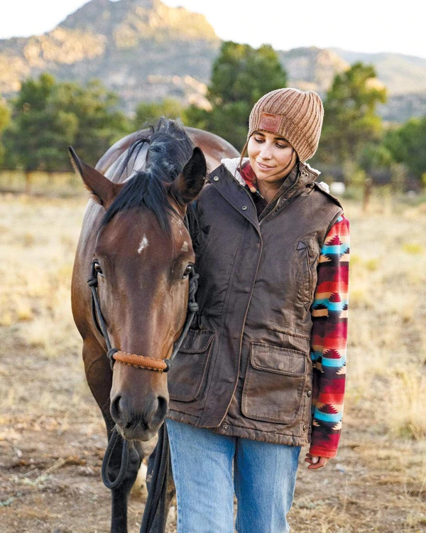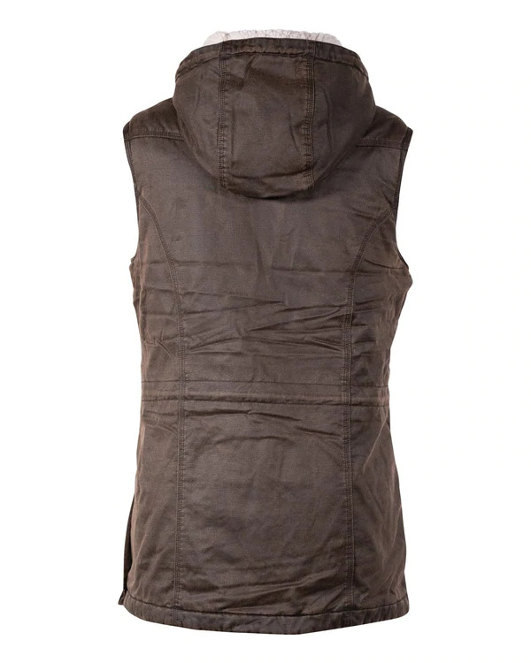 The Woodbury is crafted in Outback Trading's Canyonland fabric, so it has the look of oilskin without the oil. It's even water resistant! Add to that the super-soft sherpa lining, a hood, and a drawstring waist and you have a vest that's flattering to the figure and toasty warm. It's the perfect companion for the cooler months of the year!