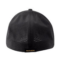The Mack Fitted Curved 6 Panel Cap features a rubberized Mack logo on the front and the peak. The curved brim offers shade up front, and the lazer cut holes at the back offer plenty of ventilation. It has a super soft inner band, but it is not adjustable. It does have a bit of stretch in it - so if you're smooth, shaved or barren on top - this could be the most comfortable cap you've ever owned!