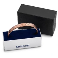 Stand out from the crowd with the Fearless Destiny Cuff Bracelet. This copper bracelet features stunning engraved designs. An antiquing highlights the intricate details. Magnents cover the inside and a roped border creates the edge of the cuff bracelet. One size fits all.