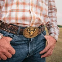 Be forever ambitious with the Wild Ambition Buckle. This bronze finished buckle features a captivating sculpted buffalo skull in the center. An antiqued filigree design covers the surface of the buckle. A roped border makes up the edge of the buckle. Each buckle has a 1.5 inch back swivel.