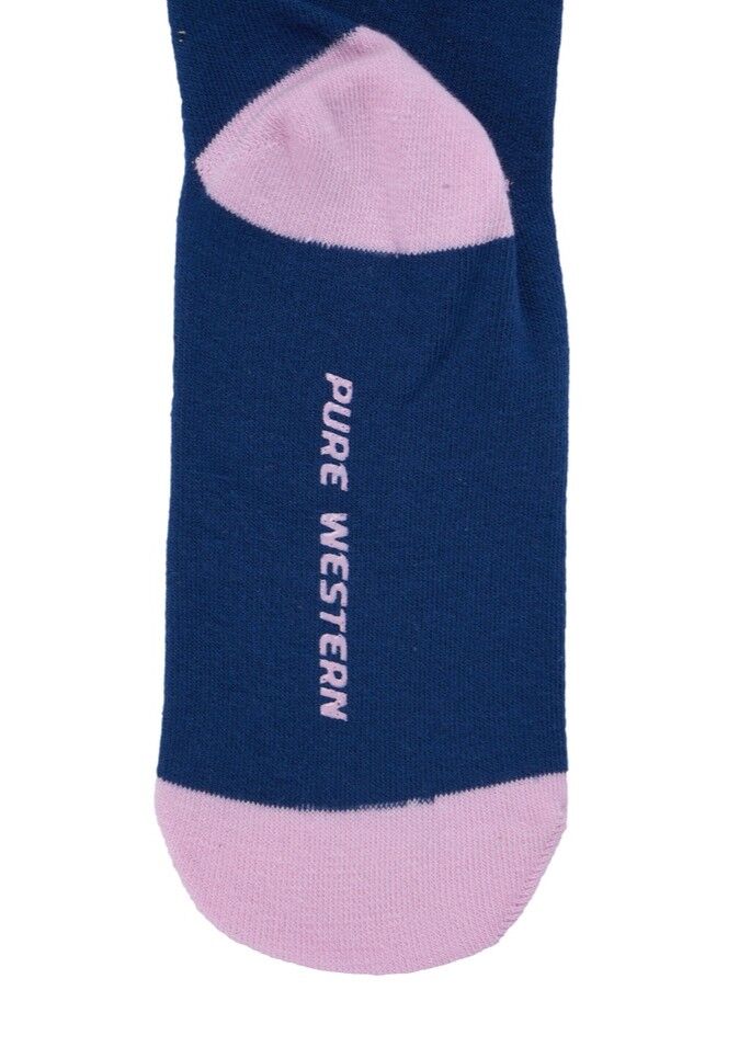 Pure Western Childrens PW Crew Socks - Twin Pack (PCP5970SOC) Navy/Pink 9-3