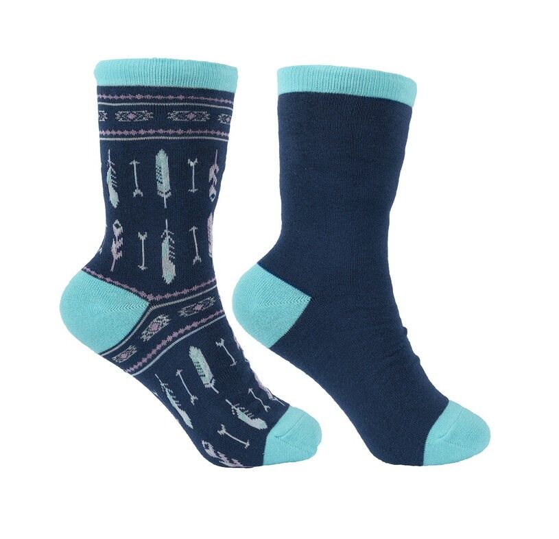 Pure Western PW Crew Socks - Twin Pack (PCP2949SOC) Navy/Turquoise 2-7