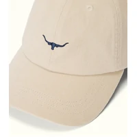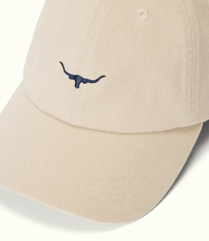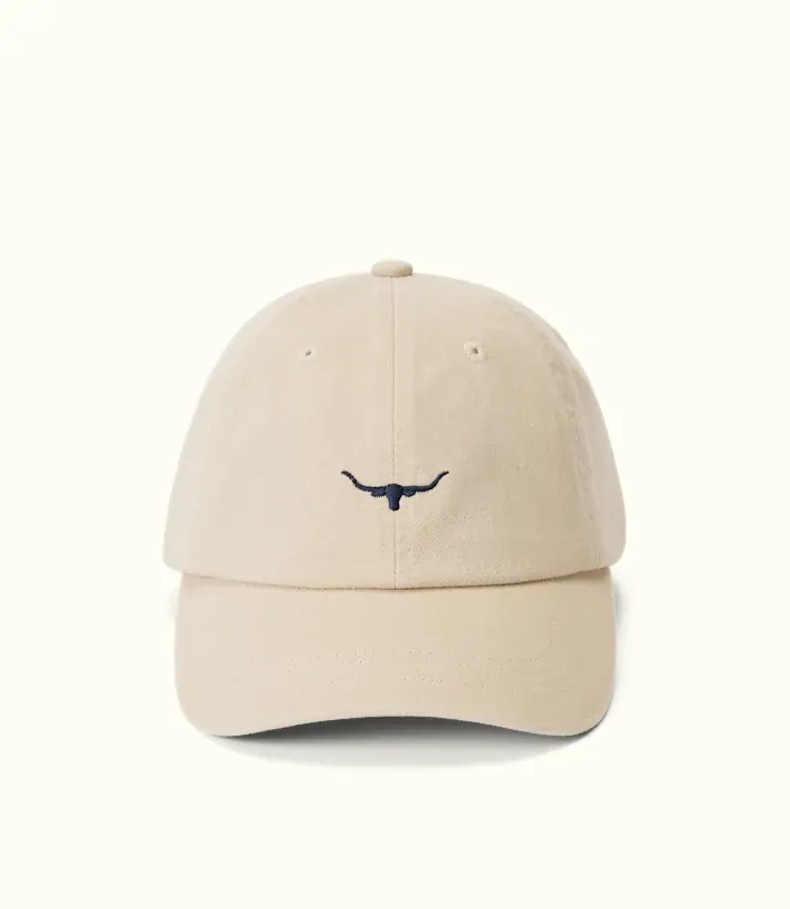 Crafted from 100% organic cotton twill, this cap features an embroidered mini Longhorn logo, an adjustable strap with a brass branded logo metal clasp, and a stylish, comfortable fit.