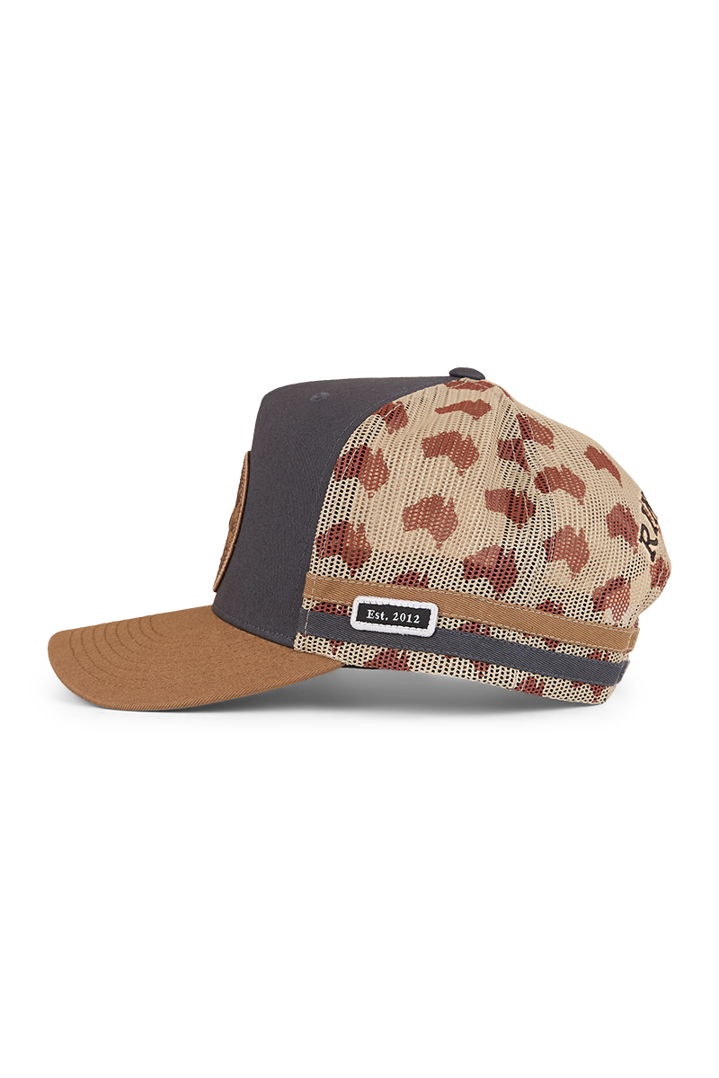 This essential deep fitting trucker cap has been created from cotton twill fabric and polyester mesh, making it ideal for the Australian climate. A woven Ringers Western badge takes pride of place on the front of this cap, capturing the brands rugged heritage, while twin side stripes are a cohesive addition. The adjustable snapback allows for a customisable fit, ensuring this cap is as comfortable as it is stylish. Printed polyester mesh panels are a patriotic touch, a tribute to our beautiful country.
