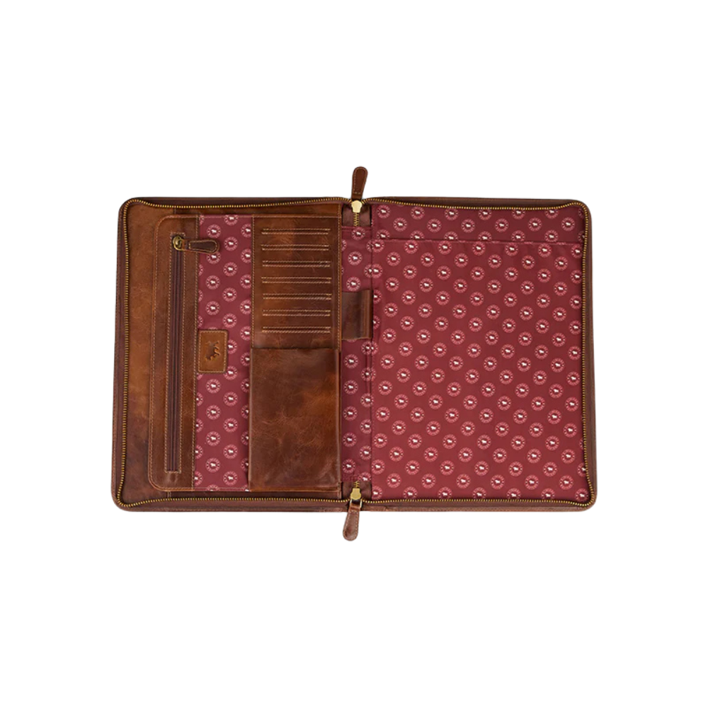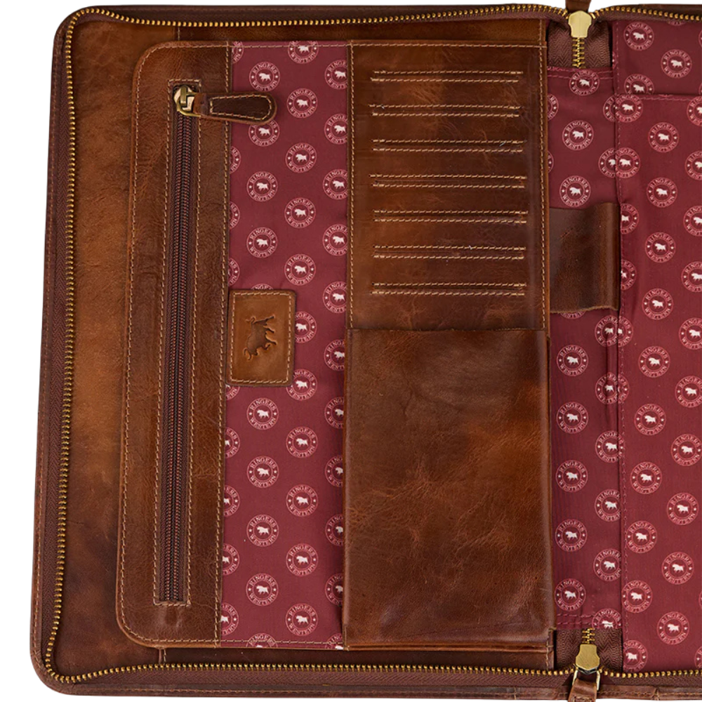 The Toto Notas keeps your notes, documents and sketches secure in one convenient and portable location. Internal compartments for note pads, cards and pens provide optimal organisation, while RFID protection offers added security. Luxurious finishes such as contrast stitching and a Ringers Western logo coin complement the Tora Notas with refined elegance.