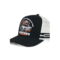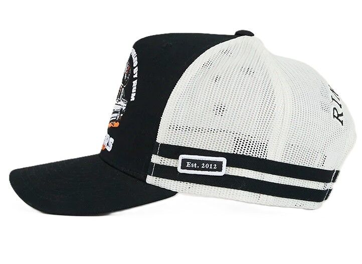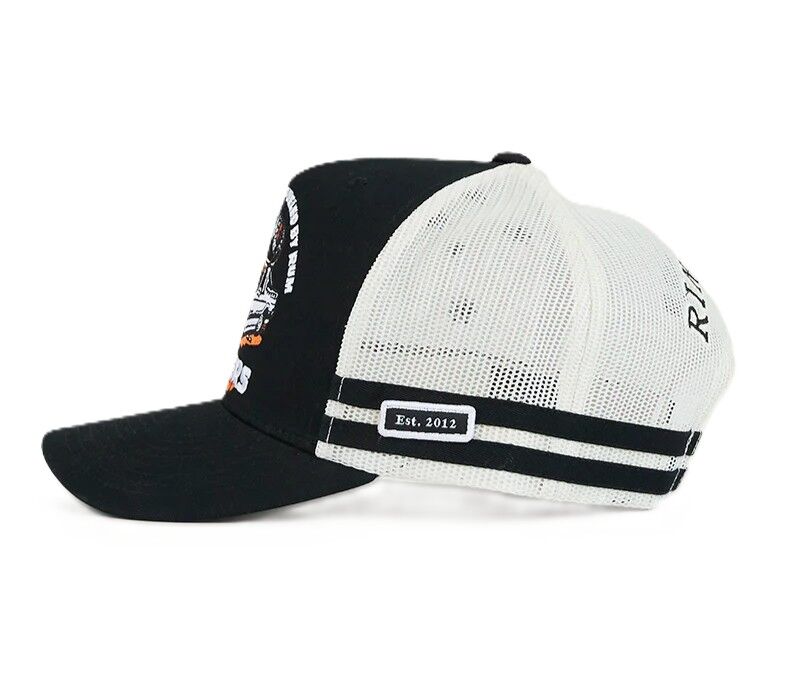 Ringers Western country trucker caps capture the heart and soul of everything we stand for. The Rum Runner Trucker Cap is a deep fit design and features a mesh back for optimal ventilation, perfect for hot summer days. A Rum Runner woven badge is complemented by twill side stripes whilst an adjustable snapback provides a customisable and comfortable fit.