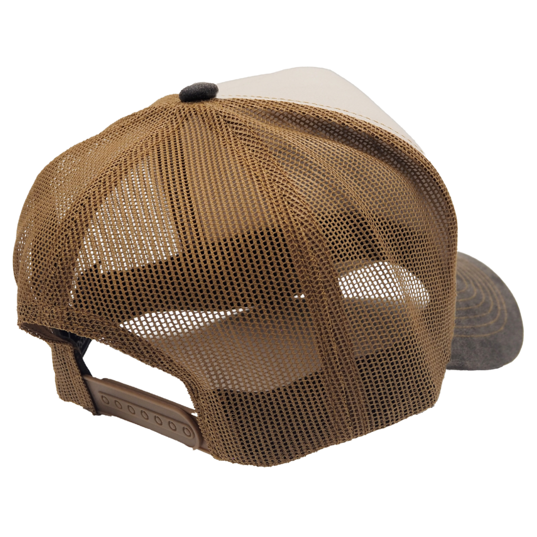 Truckers throughout the 20th-century wore caps branded with their company logo by the 70s, they had evolved into the hat we know and appreciate today. Practical, proud, and pure Americana, the trucker hat is a true classic. Like the baseball cap, it has a gently curved bill and six panels topped off with a button; unlike the baseball cap, trucker hats have mesh backs for improved breathability. Paired with a cotton front, it'll keep you cool even under a high-noon sun. Impeccably crafted and work-ready, the adjustable back fits all sizes. Pull one on for your next fishing trip, walk around town, or pick-up game for a little protection from the elements and a whole lot of character.??