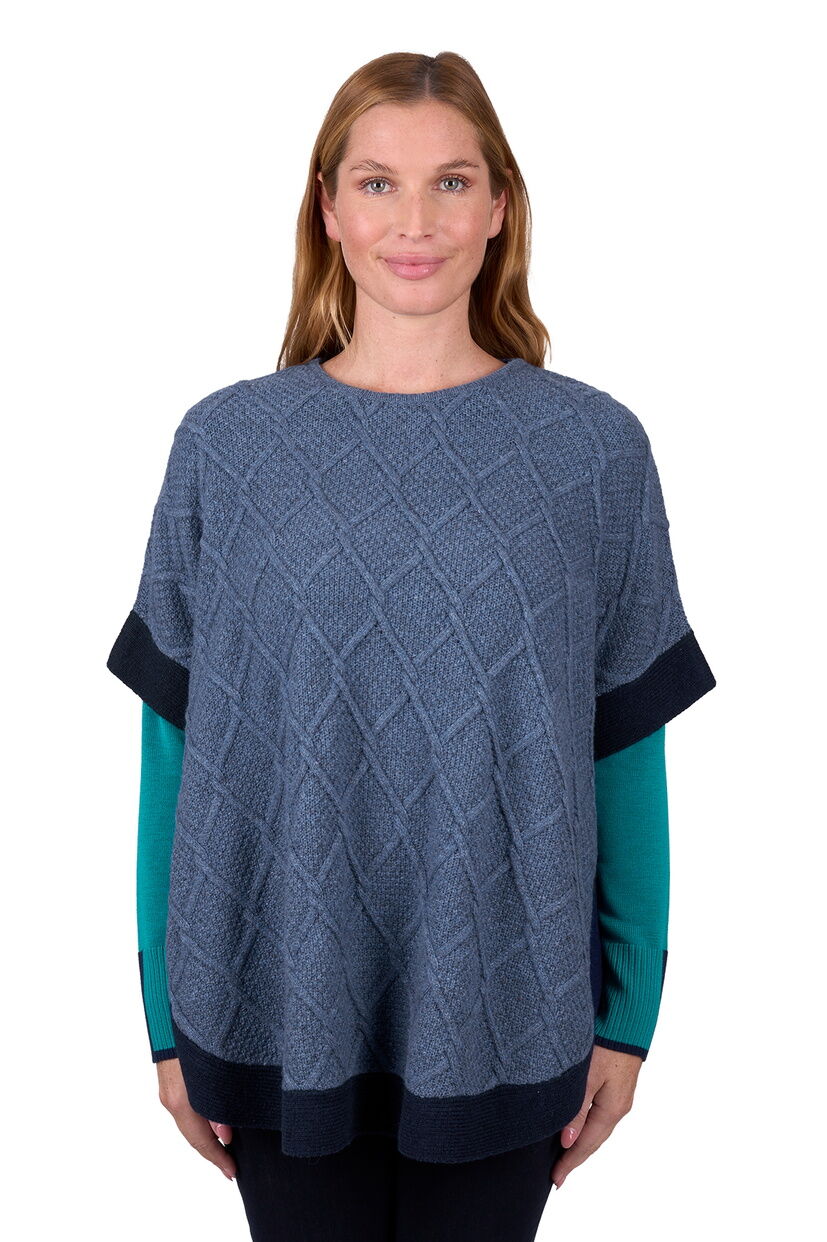 ✔ Midweight fully fashioned knit poncho in unique cable design