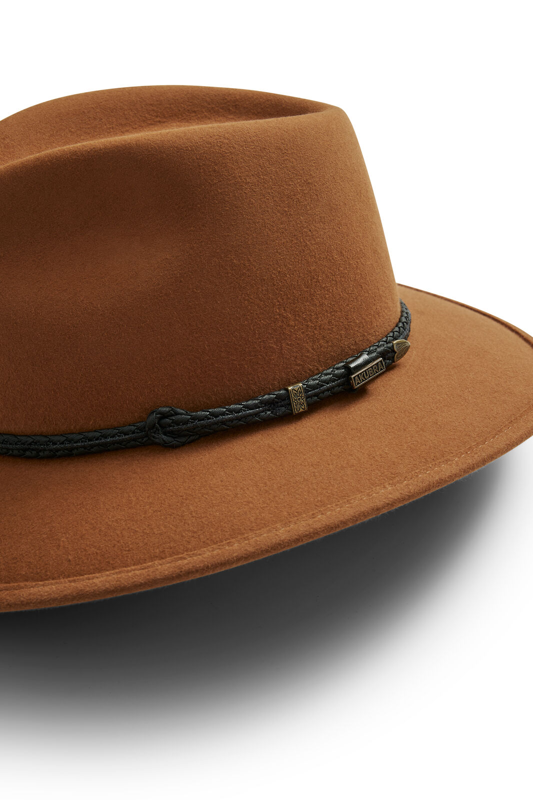 Featuring a soft, conforming structure and a unique 'memory', this soft, pliable felt hat is designed specifically for the adventurer. It can be easily worked back into shape if crushed during your travels. It has a plaited bonded leather band and a soft inner sweatband.