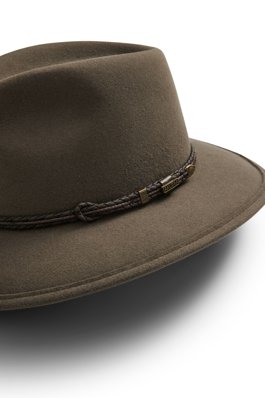 Featuring a soft, conforming structure and a unique 'memory', this soft, pliable felt hat is designed specifically for the adventurer. It can be easily worked back into shape if crushed during your travels. It has a plaited bonded leather band and a soft inner sweatband.