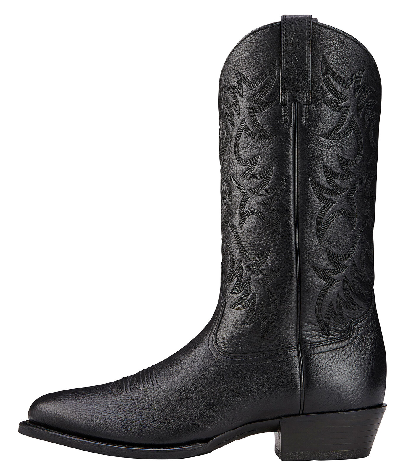 The smooth black deertan leather keeps things tidy enough for town, but they're still tough enough for station work. The R-toe profile gives your foot room to move, while the dress heel and classic stitching keep the look properly western.