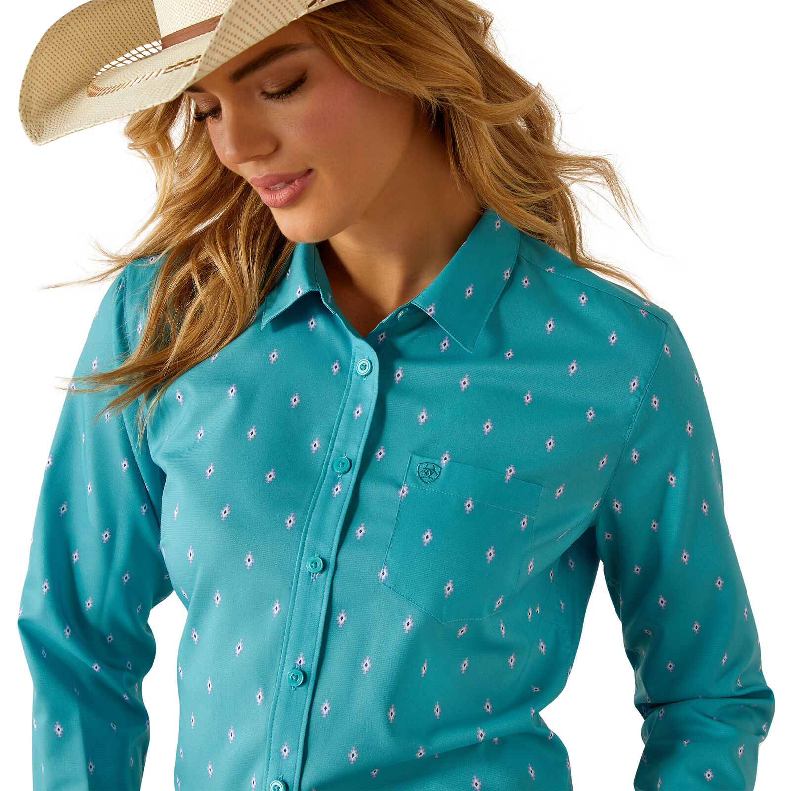Athlete-tested and arena-proven, the Ariat® Kirby Pro Shirt is built to compete. It's engineered with an easy-care performance fabric, which stretches with your every move and looks polished right out of the wash. Add UPF sun protection and a flattering, saddle-ready fit, and you've got a shirt that can keep up.