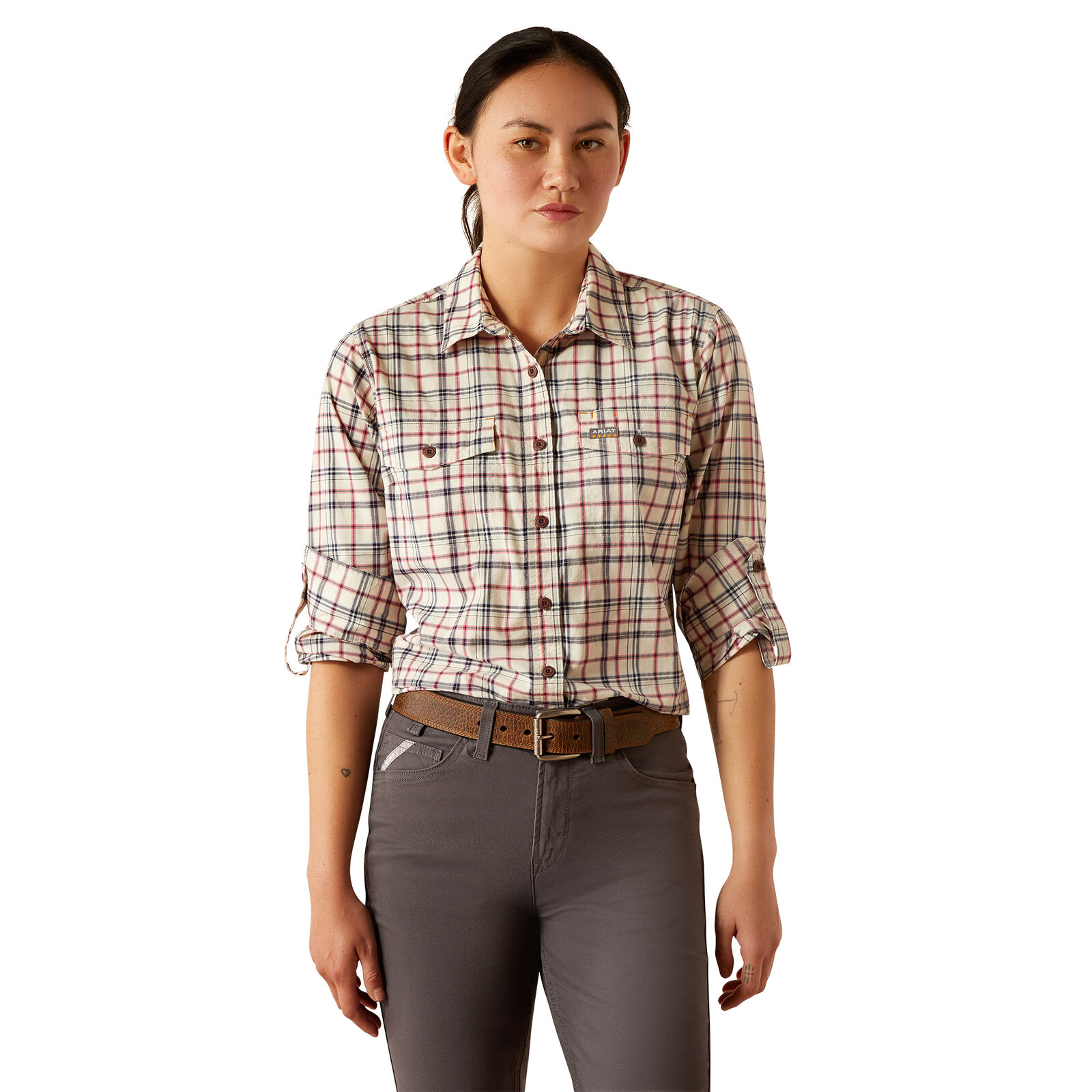 Ariat Womens Rebar Made Tough Durastretch L/S Work Shirt (10055078) Vanilla XS