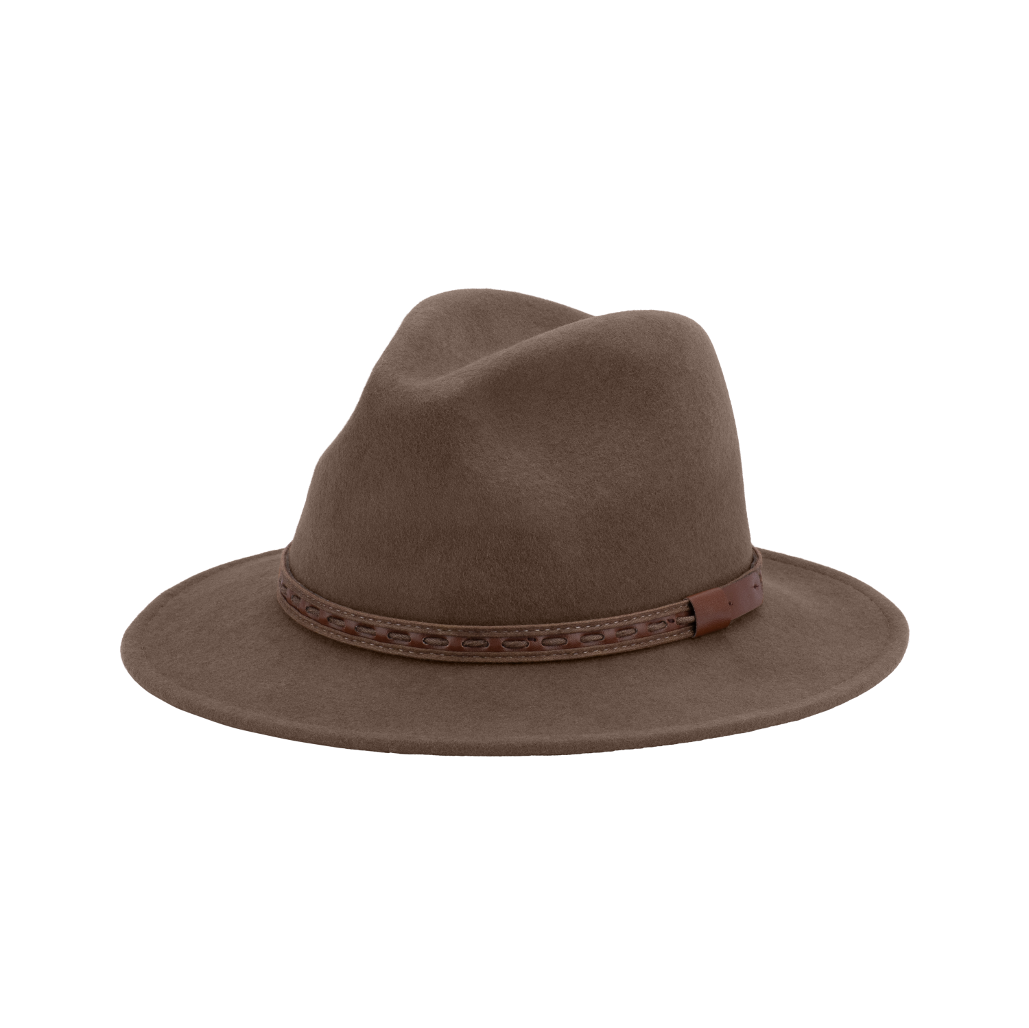 Each hat starts with premium wool fibres that are felted - pressed together with moisture and heat - to form a dense, durable fabric. The felt is then steamed and moulded on a hat block to form the crown and brim. The excess felt is trimmed off, the edge stitched, and the hatband added.