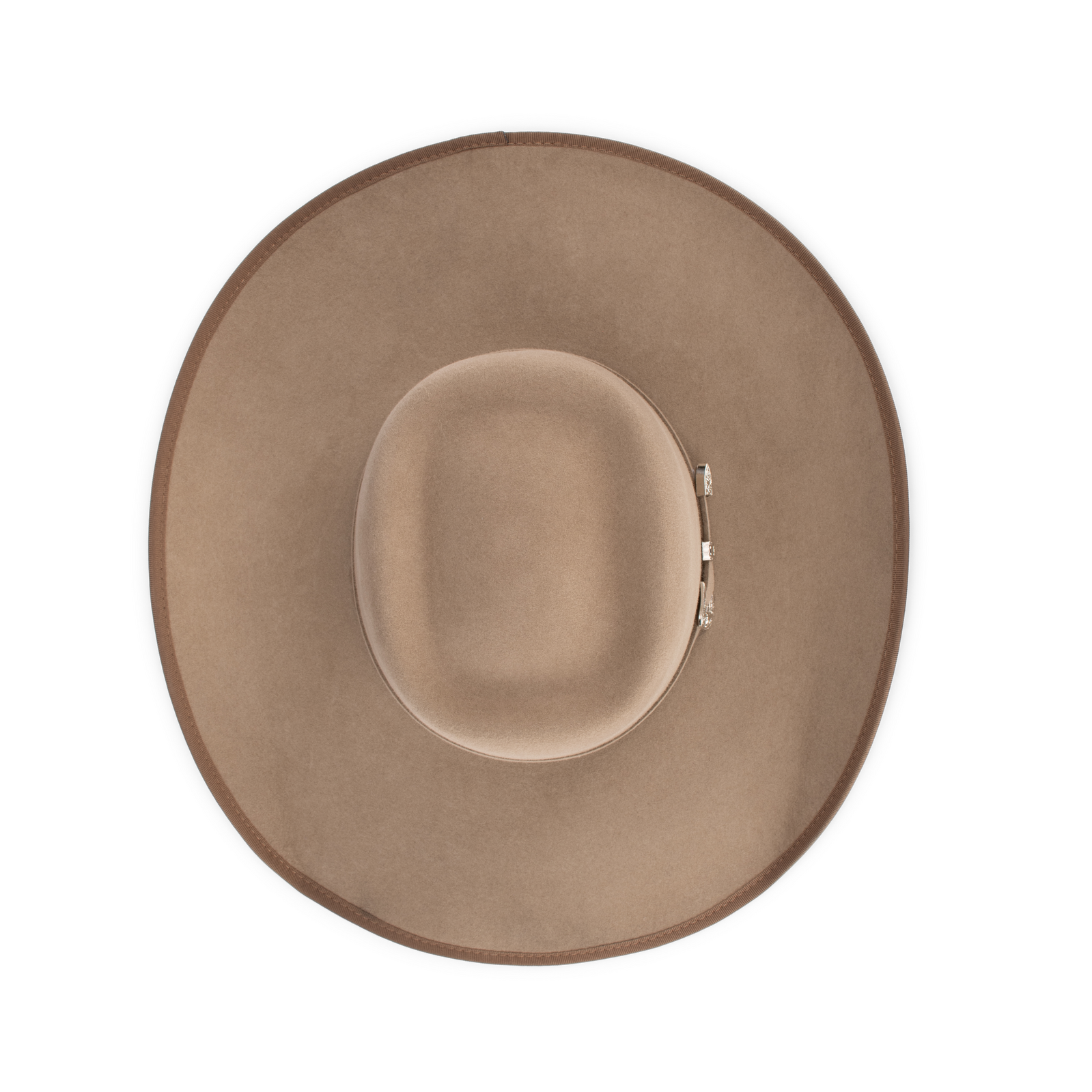 Rabbit fur felt has a soft, smooth finish and good durability for the Australian climate. The felting process involves matting, condensing and pressing rabbit hairs into a solid felt, which is then shaped, steamed, trimmed, and bound along the rolled brim edge (hence “Roll Bound”). The roll binding reinforces the brim’s edge. The finishing touches include an internal leather sweatband and a decorative miniature western belt head band.