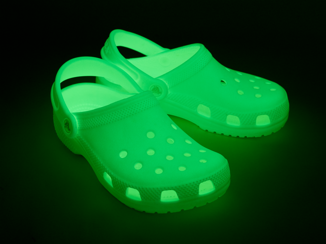 This version of the iconic clog features a fun glow-in-the-dark material and glow-in-the-dark rivets. The unique glowing design makes these great to wear anytime, especially in the dark, and Croslite™ foam construction keeps them light and easy to wear. Grounded in comfort, spiked with personality.