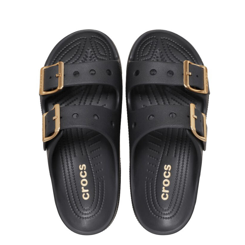 Crocs Womens Saturday Metallic Buckle Sandals are the kind of grab-and-go pair you’ll keep near the door. They’ve got that simple two-strap look inspired by the Classic Clog, but the metallic buckle gives them a cleaner finish for days when you want to look neat without having to make the effort.