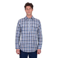 Hard Slog Mens Gibson Half Button L/S Shirt (H5S1126185) Blue/Tan M [SD]