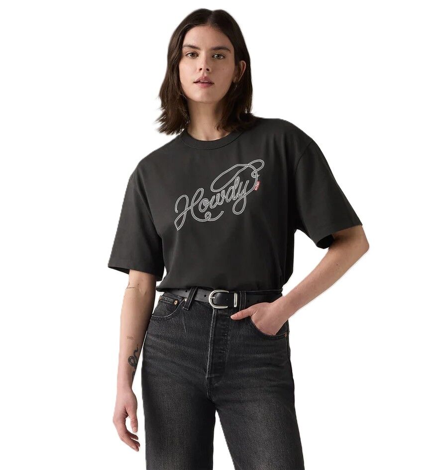 Levi's Womens Howdy Script S/S Tabor Tee (001MX-0008) Pirate Black S [SD]