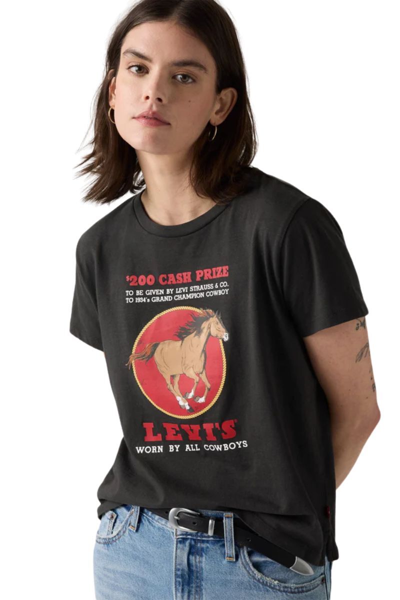 Levi's Womens Western Archival S/S Graphic Boxy Tee (A8804-0063) Cash Prize N Pirate Black L [SD]