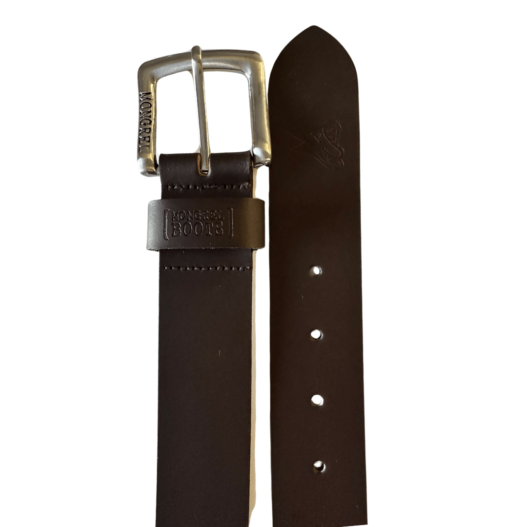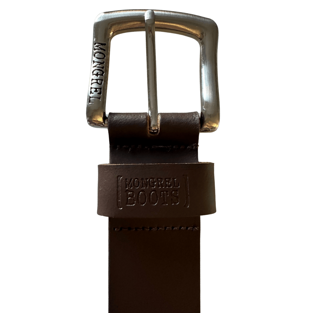Built with premium full grain leather and featuring our distinctive Mongrel nickel buckle, these belts are as tough as they are timeless.