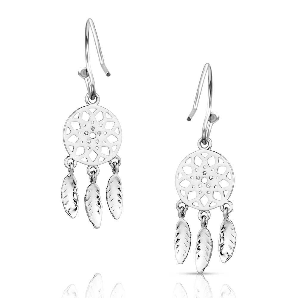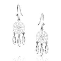 Montana Silversmith's 'Divine Weave' Earrings are reminiscent of a dream catcher. Dream catchers are believed to repel negative thoughts and dreams. Featuring stunning, open cut geometric patterns with cubic zirconias at their centre, they are suspended on hypoallergenic French wires. The bright silver finish and dangling feathers add to the sparkle and shine as you move.