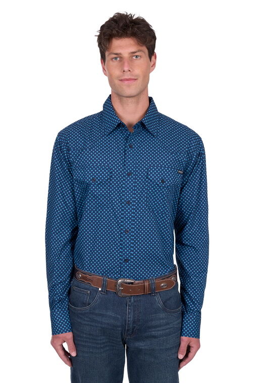 Pure Western Mens Brandon L/S Shirt (P5S1100072) Navy/Blue S [SD]