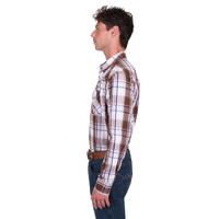 Pure Western Mens George L/S Shirt (P5S1100073) Dark Tan/Blue S [SD]