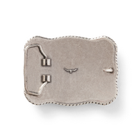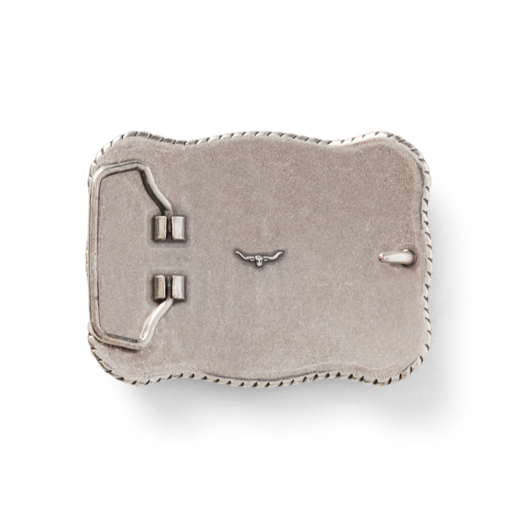 A trophy buckle with an antique silver finish and a design inspired by the iconic cloudbuster image captured by Hoofs & Horns Magazine. This style can be added to the Traditional Belt.