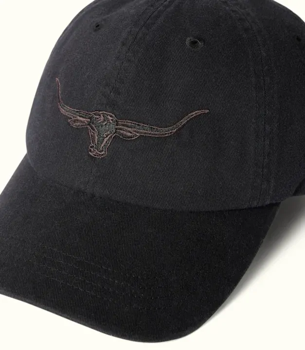 Crafted from 100% organic cotton twill, this cap features an embroidered Longhorn logo and an adjustable strap with a brass branded logo metal clasp.✔Organic Cotton Twill