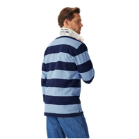A refreshed rugby with seasonal stripes, crafted from oranic heavyweight brushed cotton, featuring a twill collar and two-button placket.