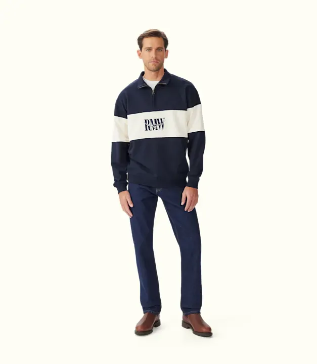 A heritage-inspired style crafted from organic cotton in our bestselling quarter-zip shape. This style is finished with contrast panelling and an embroidered Heritage logo on the chest.