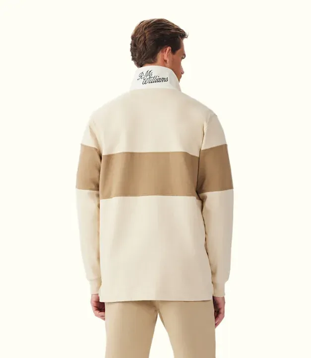 A refreshed rugby with contrast panelling, crafted from organic heavyweight brushed cotton. This style features a twill collar, two-button placket and an embroidered Heritage logo on the chest.