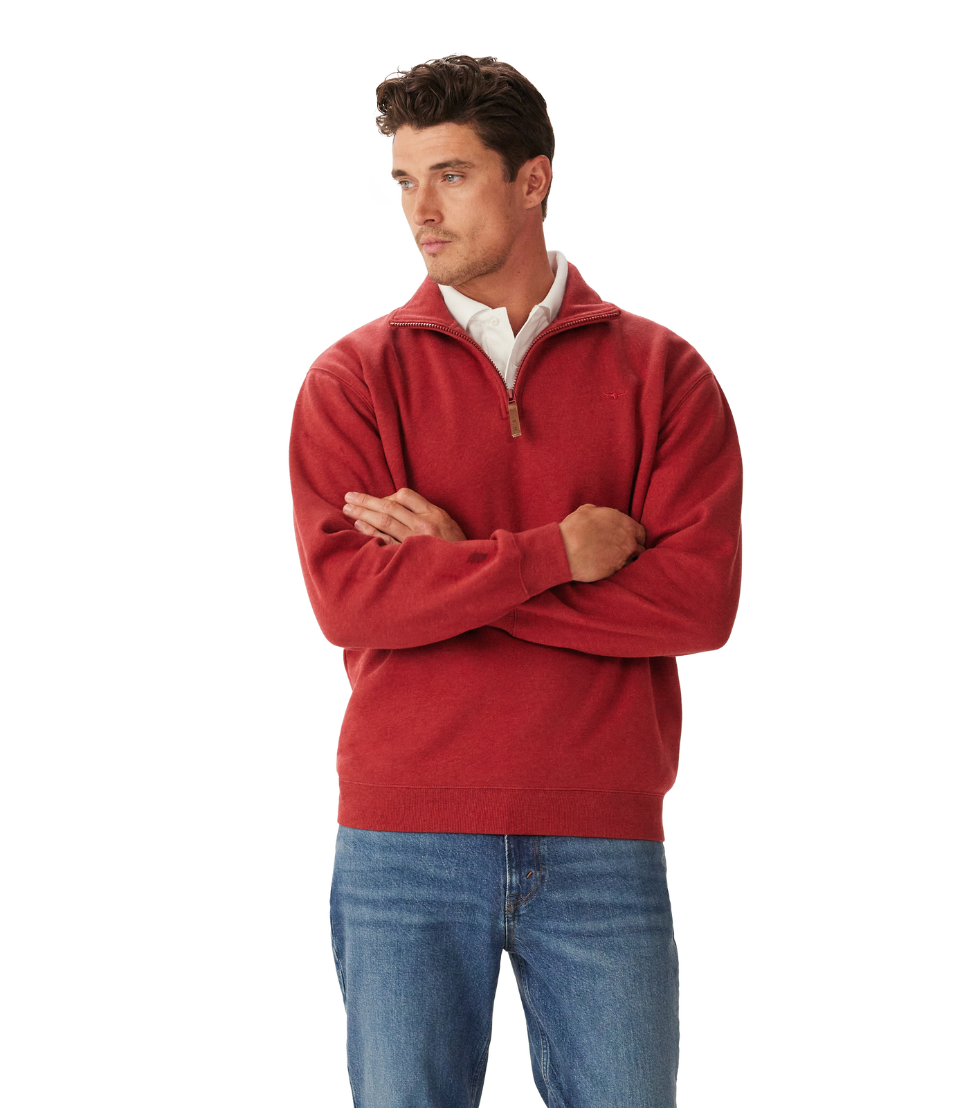 This seasonal edition of the Mulyungarie quarter zip features a leather puller, full-length sleeves, ribbed cuffs, a straight hem, and Longhorn chest embroidery. Crafted from an organic cotton blend brushed fleece, itÕs both classic and comfortable.