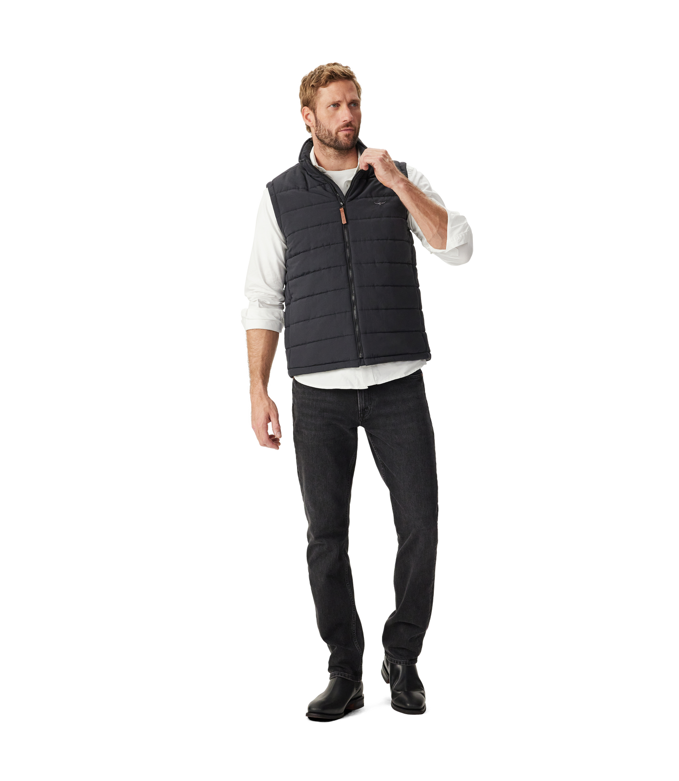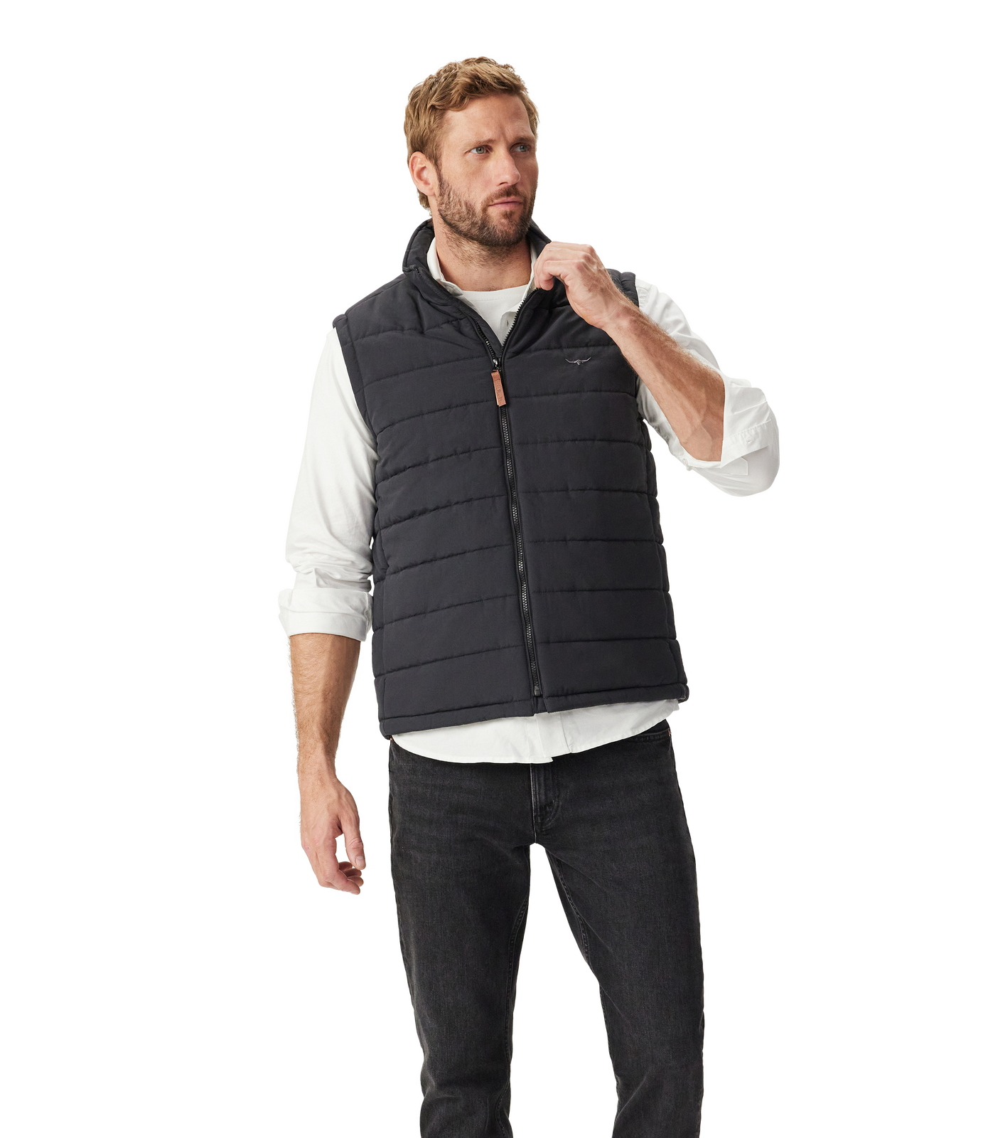 R.M.Williams bestselling vest for easy, lightweight comfort through the changing seasons. This vest is crafted in a classic padded shape with a stand collar, zip closure and handy pockets.